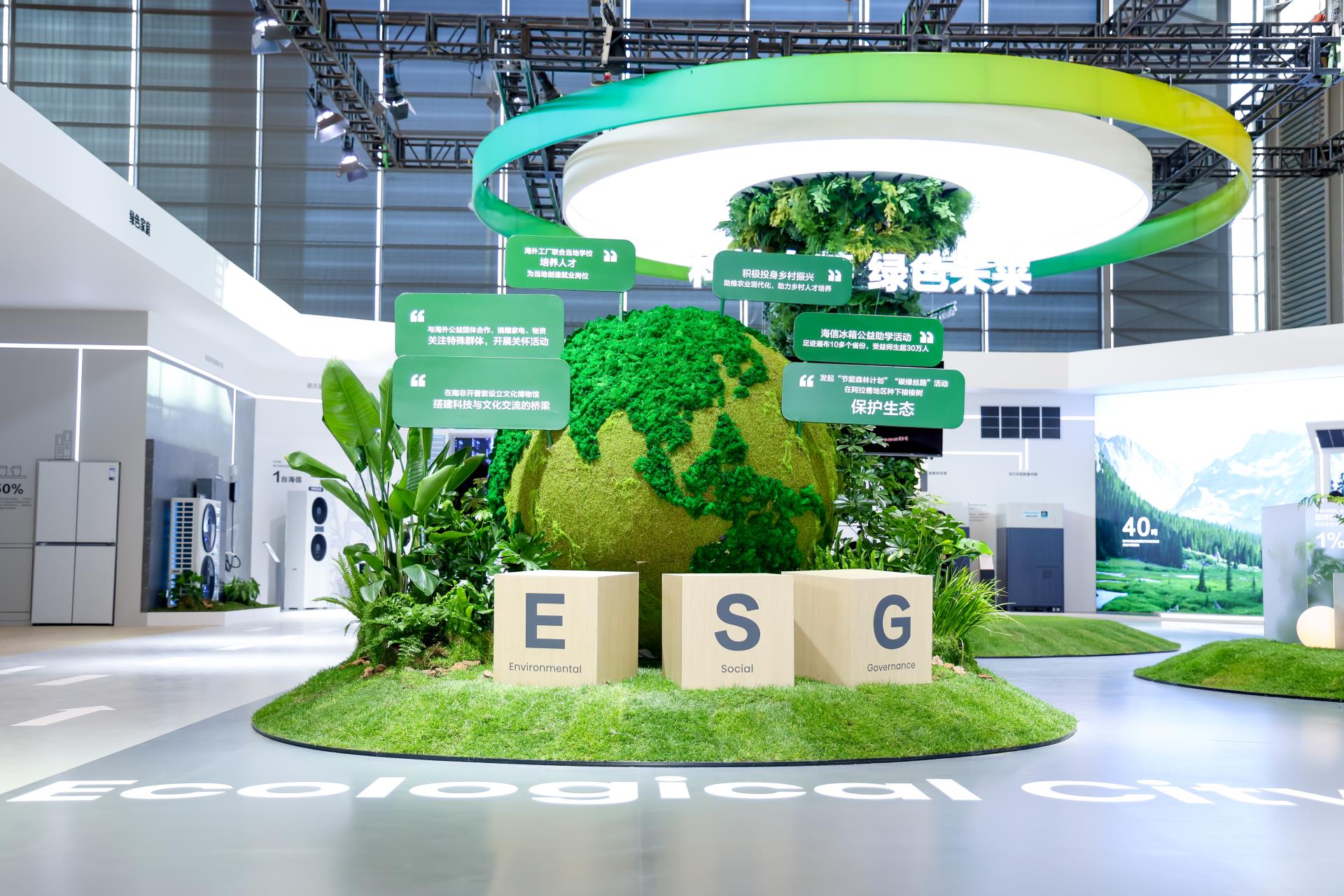 本届AWE,海信智慧能源展区围绕“全场景绿色共生”为核心打造全景体验展台。集中展示了自身ESG发展理念与落地成果,同步带来家庭绿色能源、工商业光储空一体式以及智慧能源全场景解决方案,以全场景技术落地切实推动绿色低碳发展。